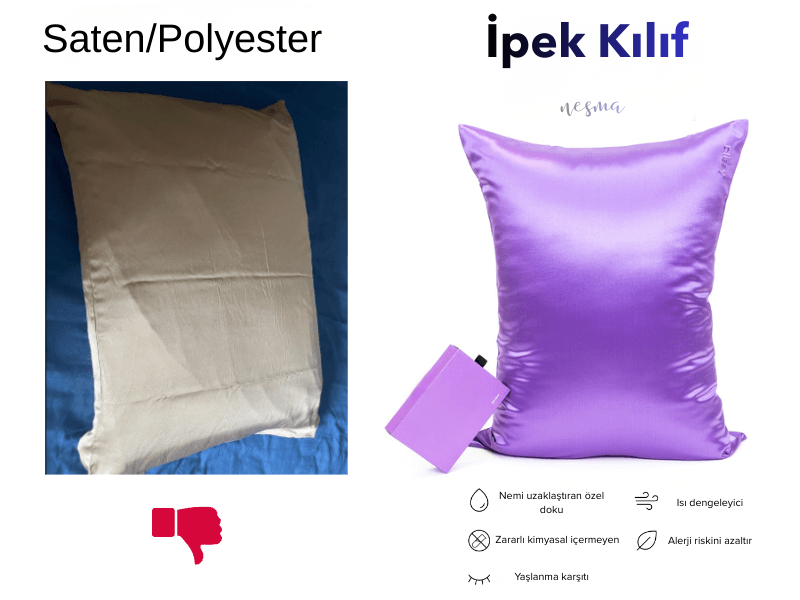 İpek yastık kılıfı ile saçlarınız sabahları bir önceki geceden daha iyi görünebilir.